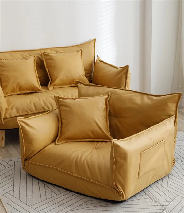 Japanese Style Foldable Floor Sofa Chair Leathaire Upholstery Lazy Recliner Armchair Accent Chair for Dormitory Apartment Living